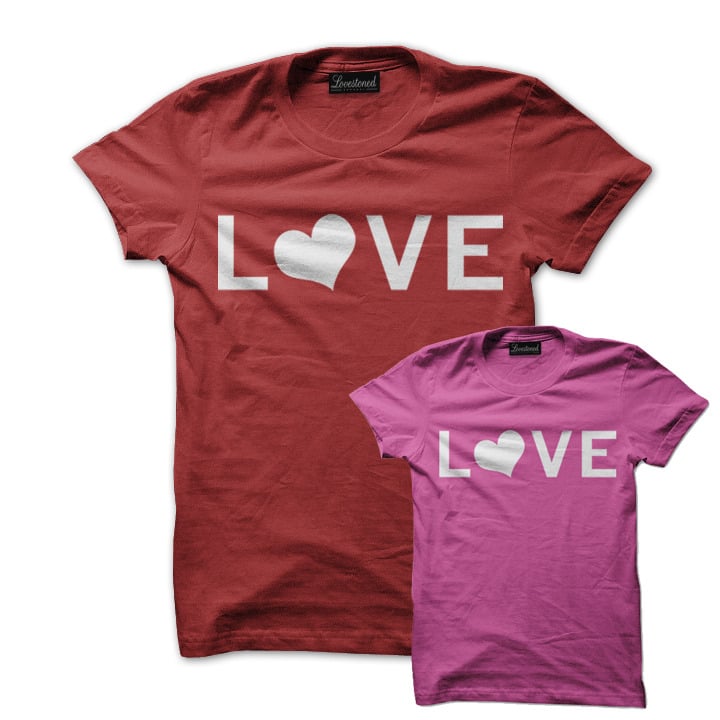 Our 'LOVE' print on cardinal crew-neck, fitted cotton tees. Suitable for all shapes and sizes. This tee is also available in a ladies fit pink tee.